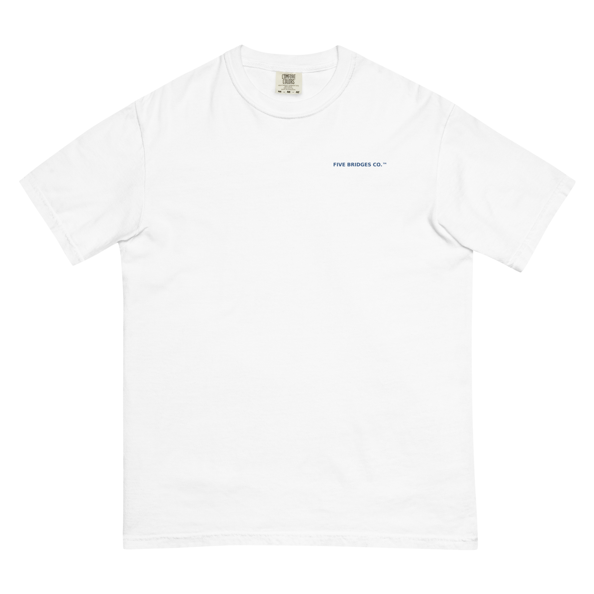 A clean, heritage-inspired tee featuring illustrated Downtown Macon landmarks on the back with a classic marquee reading Built on Southern Rock. Finished with Macon, Georgia — Est. 1823 and a subtle Five Bridges Co. front chest mark. Simple, timeless, and rooted in local history.